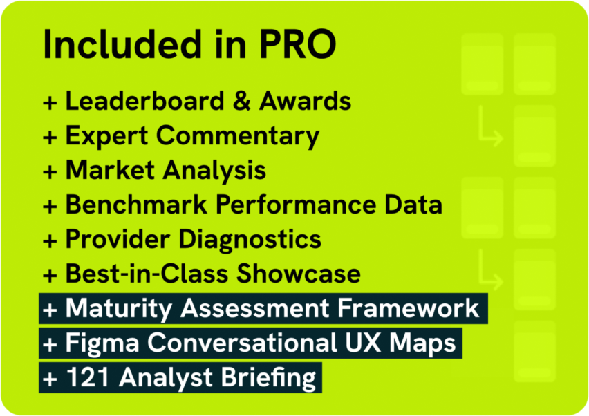 In addition to the ESSENTIALS report, unlock a Maturity Assessment Framework, Figma Conversational UX Maps and a 121 Analyst Briefing.